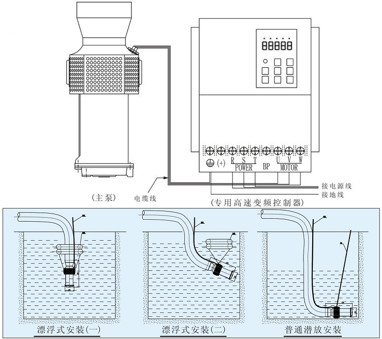 五、大流量轻型潜水泵接线与装置