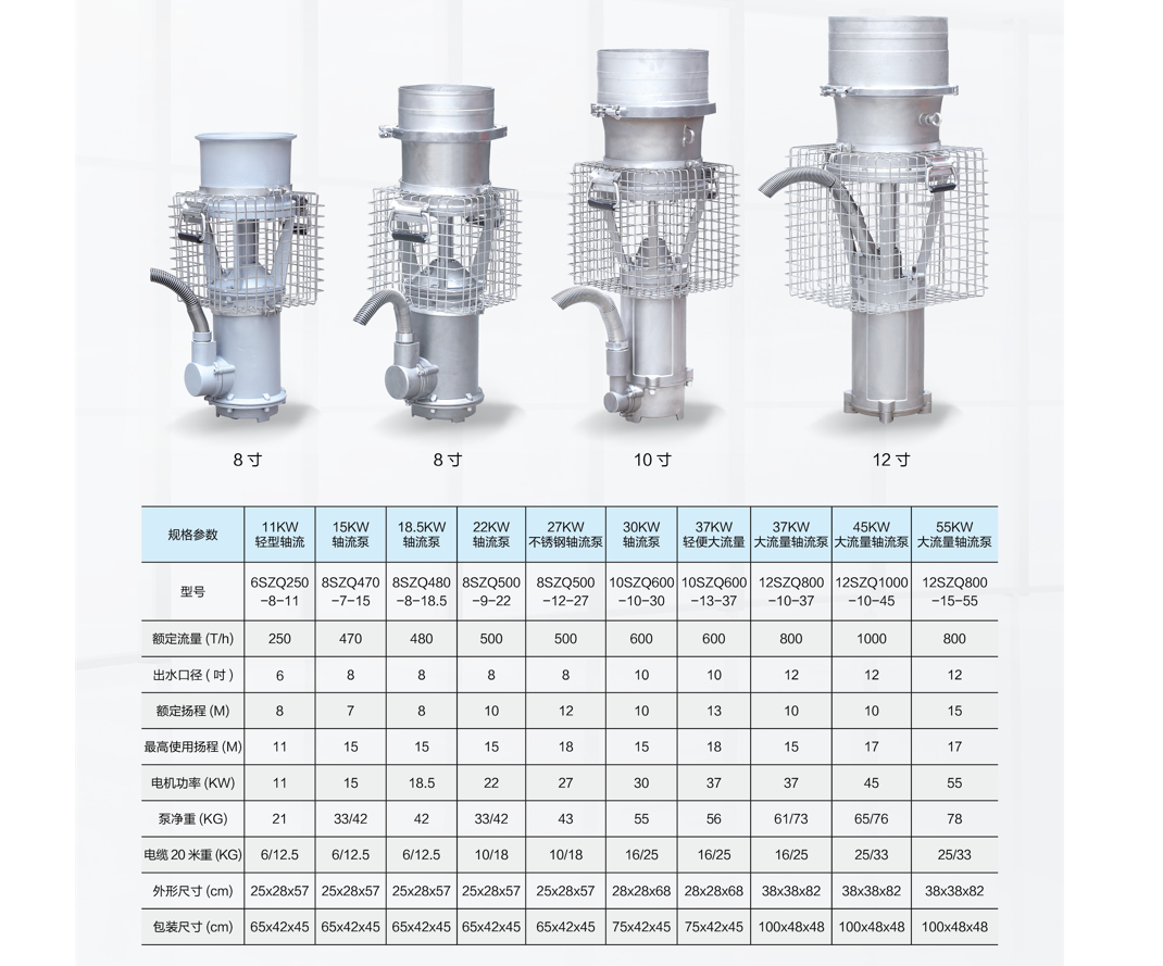 杭州桂冠环保科技有限公司生产的有6寸,8寸,10寸,12寸出口的各种规格的大流量轴流泵,流量有150-1200方,扬程5-30米的各种规格的轴流泵,特别规格扬程可抵达100多米,功率从3KW至100KW各类移动排灌及防汛用泵。以及有经过简略替换叶轮和泵体就能结束低扬程大流量泵和高扬程泵的双用泵。永磁同步电机轴流泵(防汛泵)|杭州防汛泵|浙江防汛泵|永磁同步电机轴流泵|永磁同步电机轴流泵厂家|永磁同步电机轴流泵选型|永磁同步电机轴流泵参数