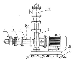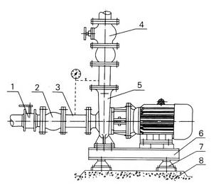 4、在泵的进、出口管路上安装调节阀,在泵出口附近安装压力表,以控制泵在额定工况内运行,确保泵的正常使用。