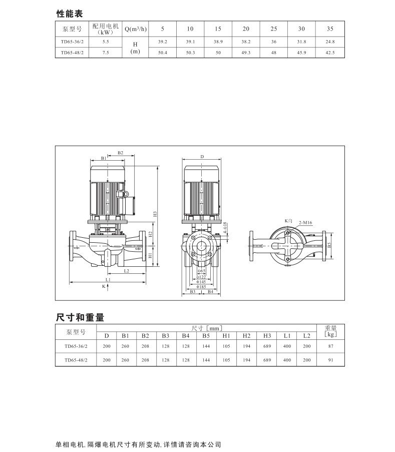 TD65系列单级管道离心泵,配有标准电 机和机械密封。此类产品的结构与相近类型产品相比,更不易受到泵送液体中杂质的影响。产品设计为顶部可拉出的拆装形式,其可 以在不影响管路系统的情况下对泵进行维修。所有泵采用创新式便拆式机械密封,更好机械密封无需拆卸电机。