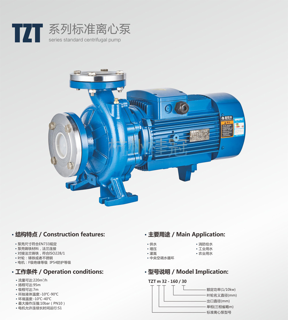 7、供输送清水及物理化学性质类似于清水的其他液体之用,适用于工业和城市供水,高层建筑增压送水,园林喷灌,消防增压,远距离输送,暖通制冷循环、浴室等冷暖水循环增压及设备配套,使用温度T≤80℃。
