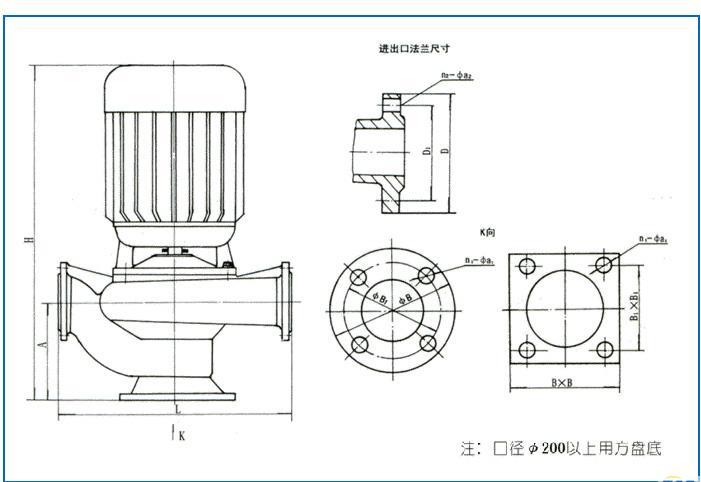 5、泵为立式结构,进出口中心线在同一水平线上,且进出口法兰规格相同,安装拆卸十分方便。