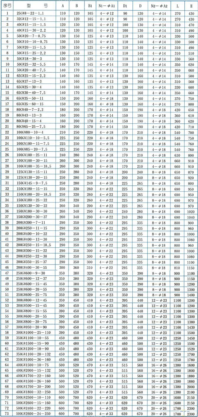 GW型管道式无堵塞排污泵是本司在引进国外先进技术的基础上,结合国内水泵的使用特点而研制成功的新一代泵类产品,具有节能效果显著、防缠绕、无堵塞、自动安装和自动控制等特点,在排送固体颗粒和长纤维垃圾方面,具有独特效果。 该泵水力性能先进、成熟,产品经性能测试,各项指标均符合有关设计要求。 本司产品全部采用计算机设计和优化处理,公司拥有雄厚的技术力量、丰富的生产经验和完善的检测手段,从而保证产品质量的稳定可靠。